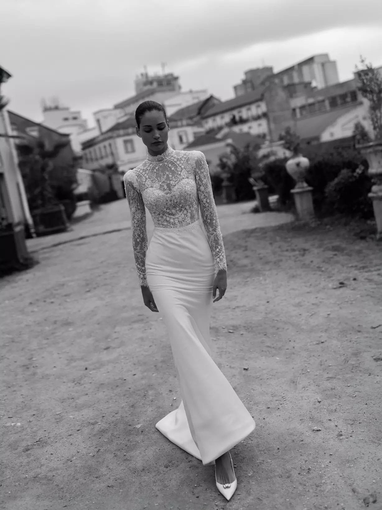 Bijou ist die perfekte Wahl für die Braut, die klare Eleganz liebt und sich zugleich einen wandelbaren Auftritt wünscht – von puristischer Strenge bis hin zu märchenhafter Anmut.