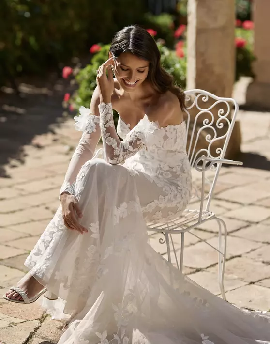 Erleben Sie die moderne Eleganz dieses Meerjungfrauen-Brautkleids von Adriana Alier. Dieses atemberaubende Kleid ist aus feinster Spitze gefertigt und mit funkelndem Strass verziert, was für eine luxuriöse Optik sorgt. Der trägerlose Ausschnitt betont Ihre Schultern und Ihr Dekolleté, während die abnehmbaren Ärmel zusätzliche Flexibilität und Stil bieten. Dieses Brautkleid ist die perfekte Wahl für die moderne Braut, die an ihrem besonderen Tag in einem unvergesslichen und glamourösen Look erstrahlen möchte.
