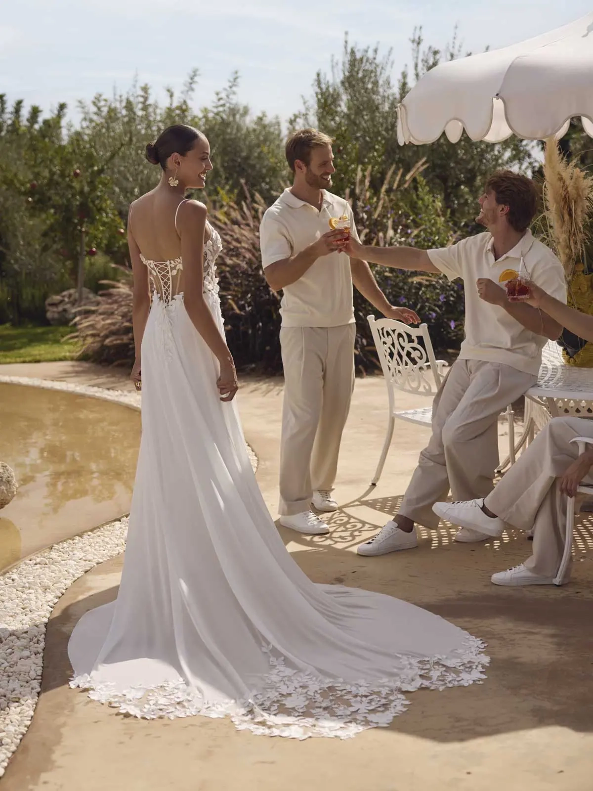 Ideal für: lässige Sommerhochzeiten, Strandhochzeiten und freie Trauungen – auch für Bräute, die Bewegungsfreiheit schätzen und einen entspannten, Boho-inspired-Look lieben.