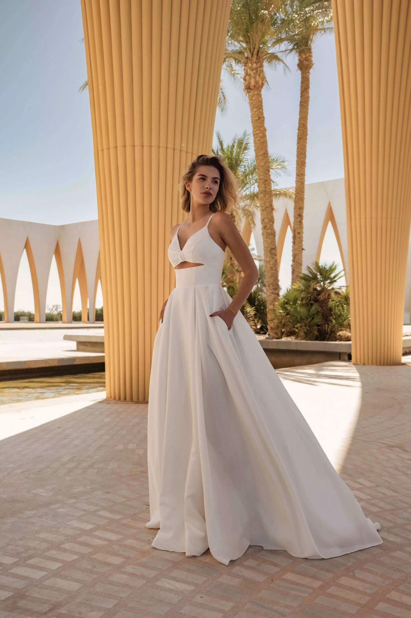 Ob beim Einzug, beim ersten Tanz oder im Abendlicht – dieses Modell überzeugt durch zurückhaltenden Glamour, hochwertige Optik und ein Gefühl von zeitloser Eleganz. Ideal für Bräute, die Wert auf stilvolle Einfachheit legen und dennoch nicht auf einen Hauch feiner Schimmer verzichten möchten.